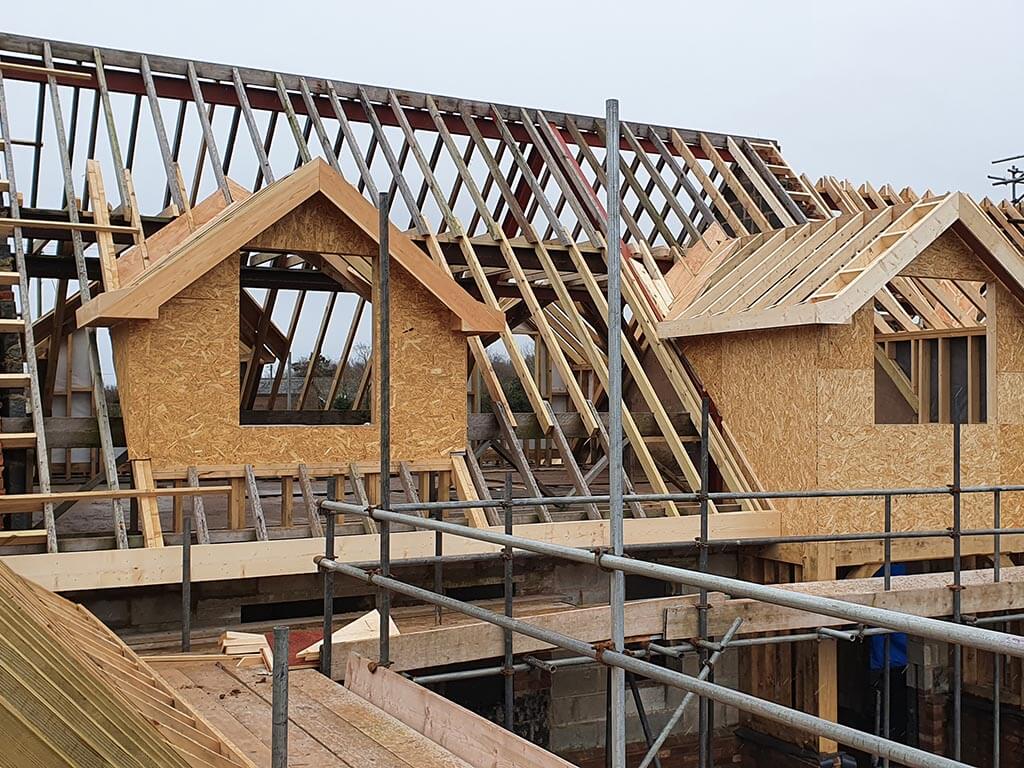Jackson Homes undertook to design, manage and construct the complete makeover of this former dormer bungalow. The re-design created a four double-bedroom, 3-bathroom house. The property features a floating oak staircase from the large, open plan kitchen, diner, family room with bi-folds on 2 aspects leading into the wrap around garden. The conversion was completed with a large two car brick garage / workshop.